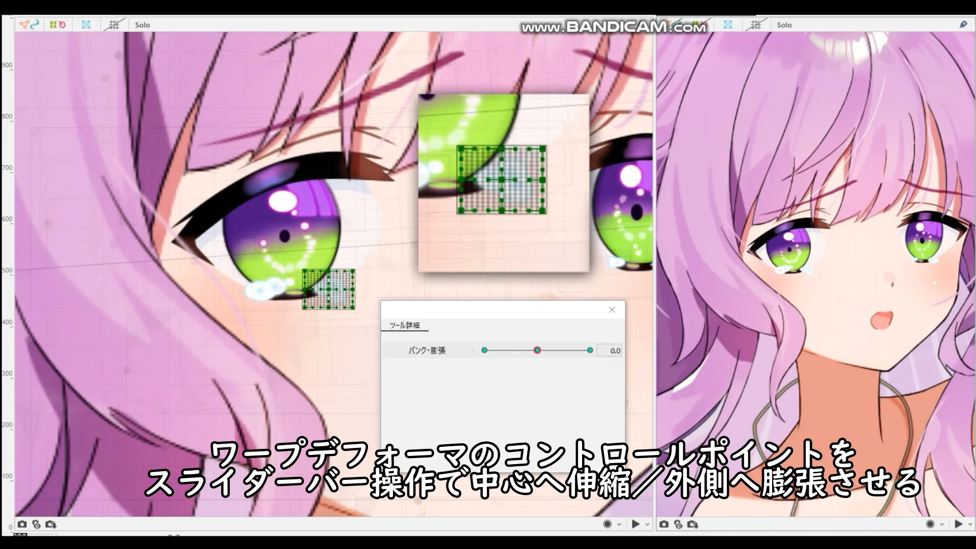 動画の通り、ワープデフォーマを「膨張・収縮」させる一時変形ツールがあると良いかと思いました。
